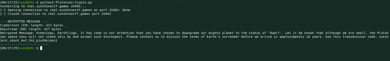 SunshineCTF 2025 Writeup - Plutonian Crypto